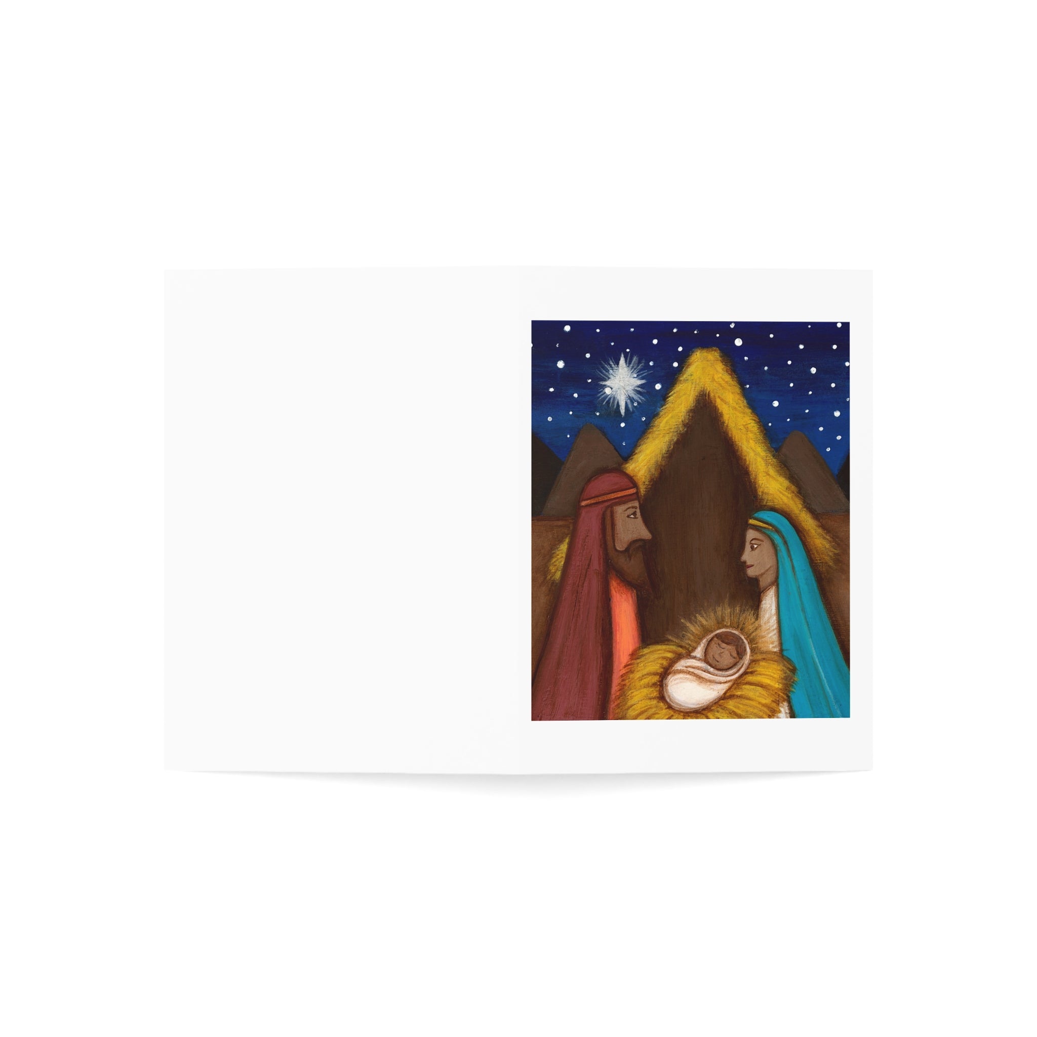 Spread joy and love with vibrant Nacimiento del Niño greeting cards, perfect for the Holidays. Show how much you care with the latest printing techniques on premium quality paper, available in four sizes and quantities.